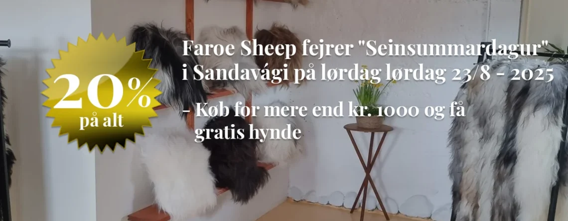 Faroe Sheep fejrer "Seinsummardagur" i Sandavági på lørdag d. 23/8 I den anledning giver vi 20 procent afslag på alle varer og derudover får man en gratis hynde (værdi: 350 kr) med i købet ved køb...
